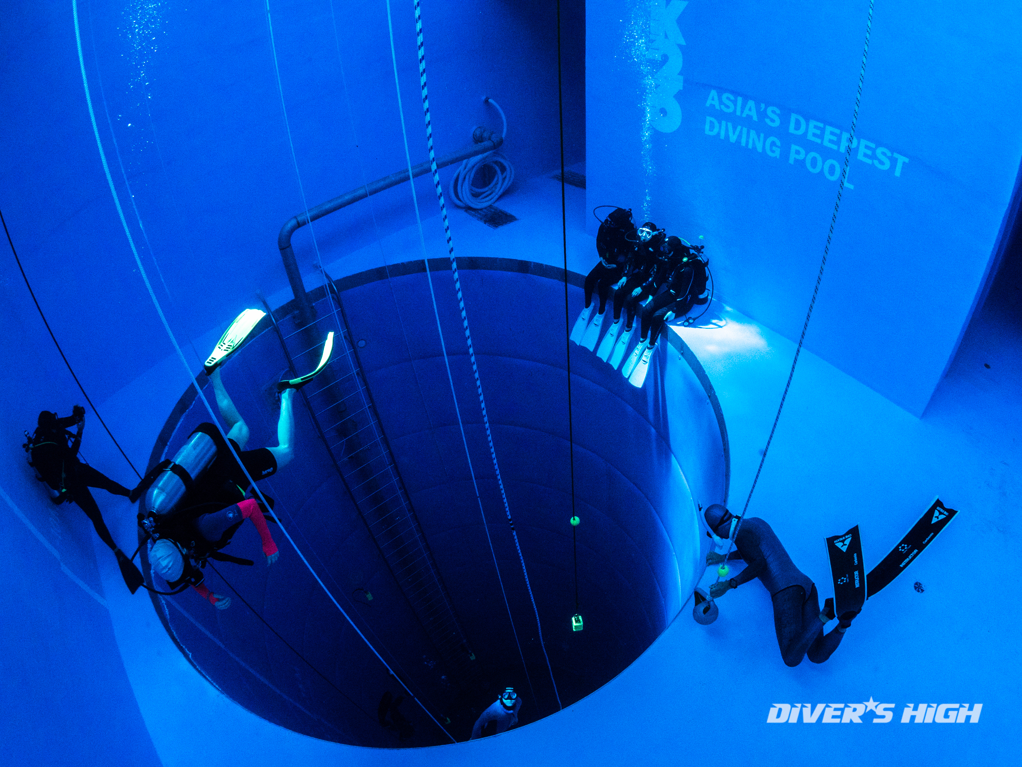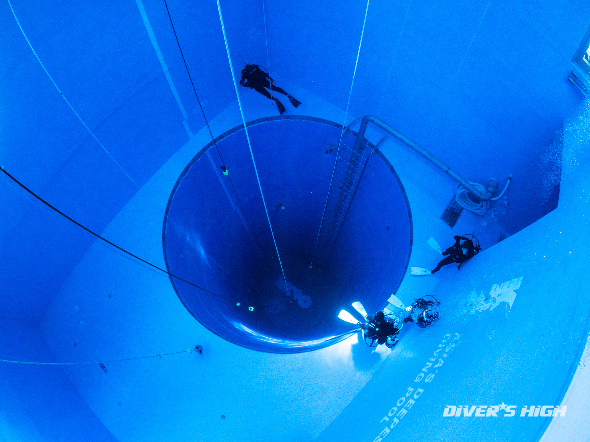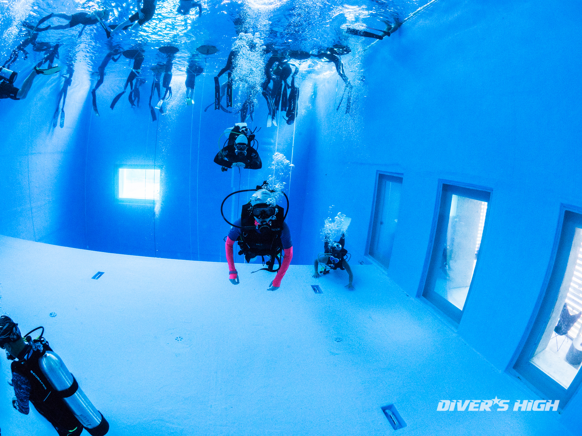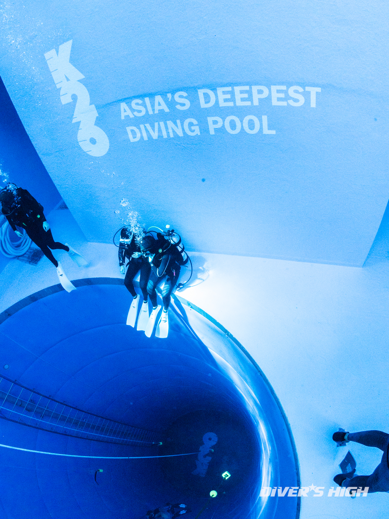 깊은 수심의 26미터 풀로 내려갑니다.