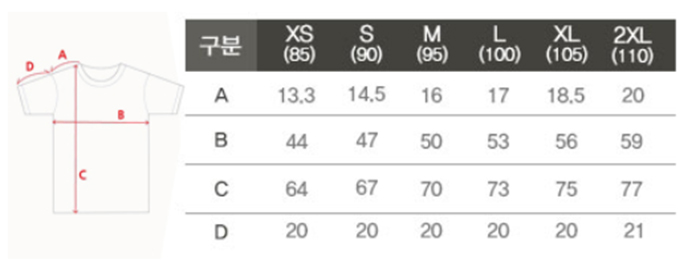 티셔츠 사이즈 표
